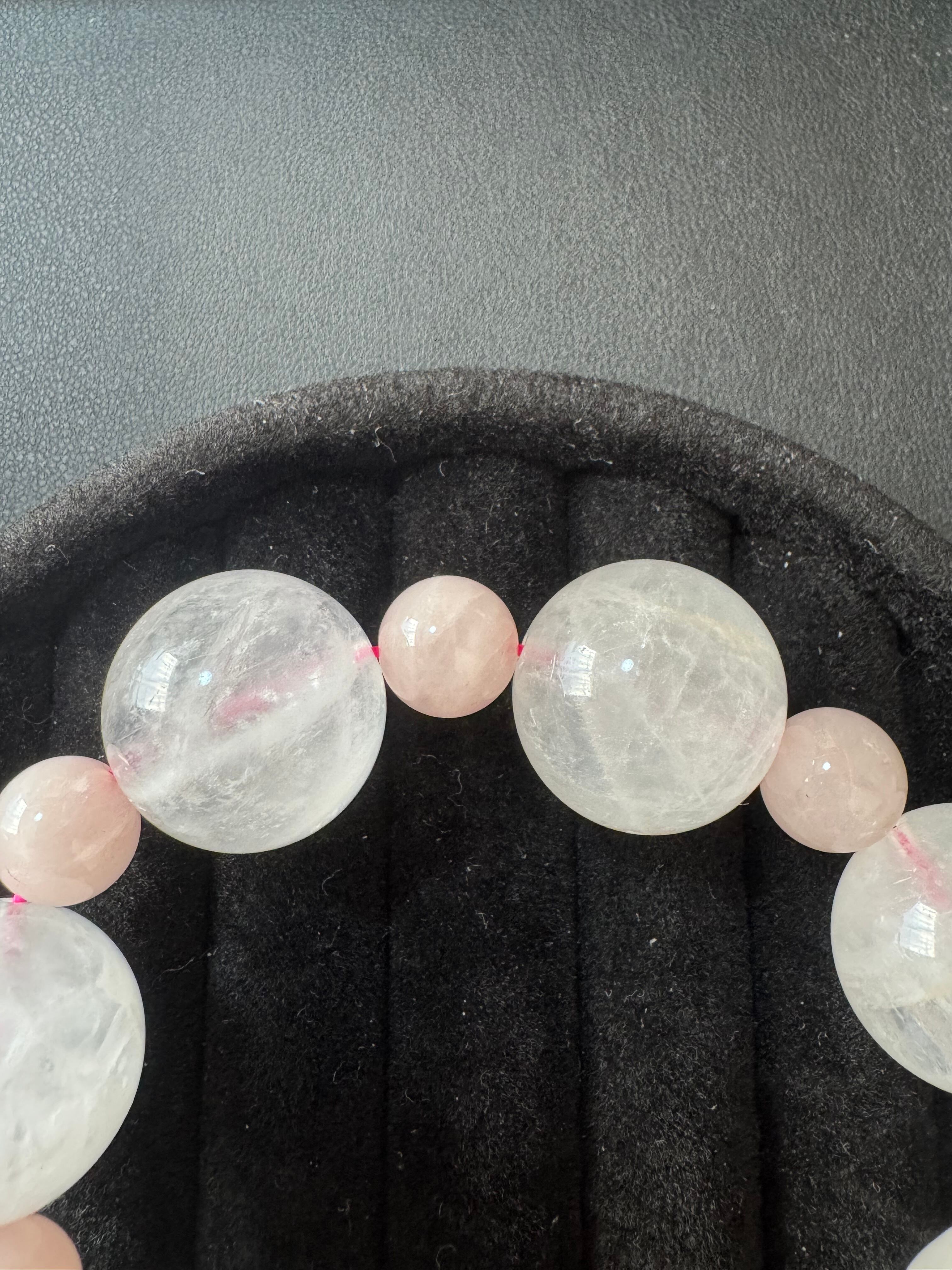 ### 大玉ホワイトクオーツとピンククロスのブレスレット